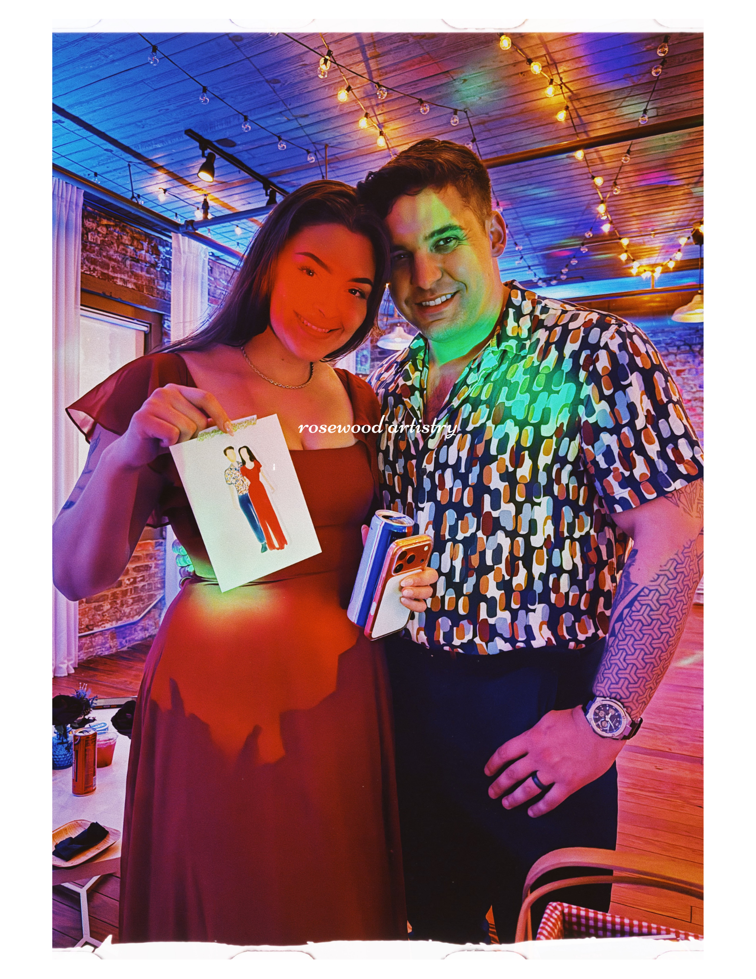 “ I did a watercolor painting lesson with Jalynn and all of my friends during my bachelorette weekend, and we also had her do guest portraits during our wedding. She’s so incredibly talented and was very patient with our lack of talent during our lesson. She was fantastic to work with throughout the whole process and the portraits were so special for guests to be able to take home. We didn’t even realize we got a full-size painting of us with our package when we booked so that was a wonderful surprise! It’s absolutely gorgeous and the amount of detail that she was able to capture with watercolors is remarkable. Having an artist wasn’t something that was a part of our original wedding plan but I’m so glad that we found her because our painting is absolutely invaluable and something that I know we’ll cherish for years and years. I cannot recommend her highly enough and I’d love to book her for a mini photo session the next time we’re in Savannah!” - Lindsey Taylor